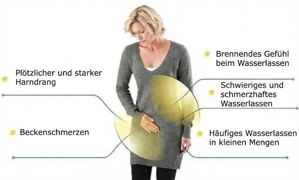 – Brennen und stechende Schmerzen beim Wasserlassen;